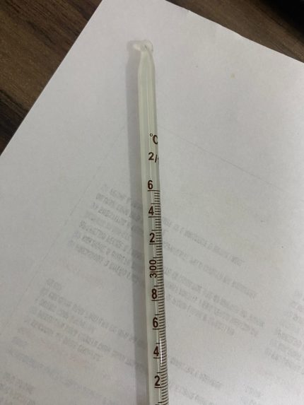 Termômetro de líquido em vidro, com enchimento de Hg. Este instrumento tem a finalidade de realizar medições de temperatura de medições em geral.